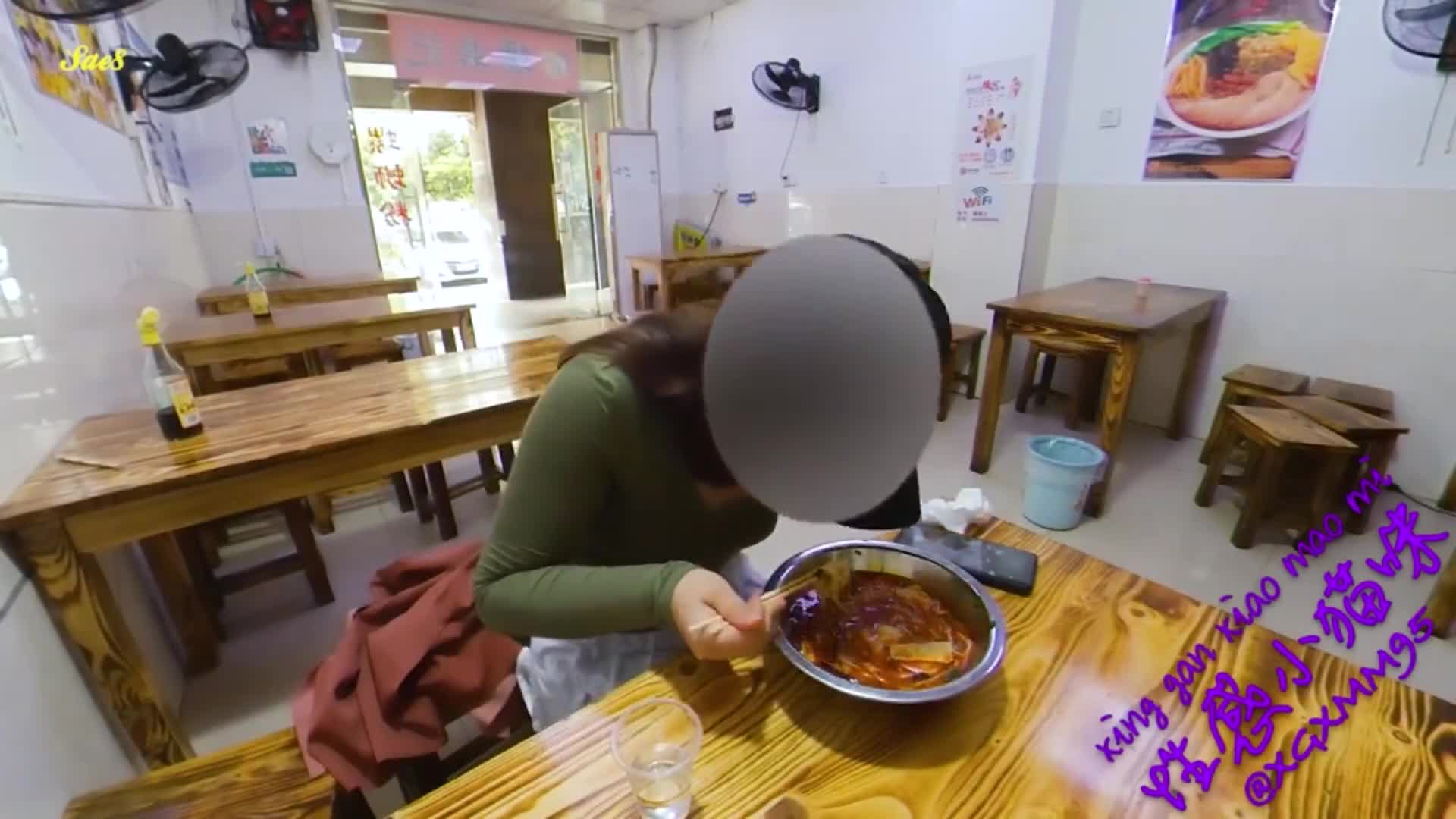 真实勾引透明真空开档丝袜去小饭馆吃饭勾引老板偷拍