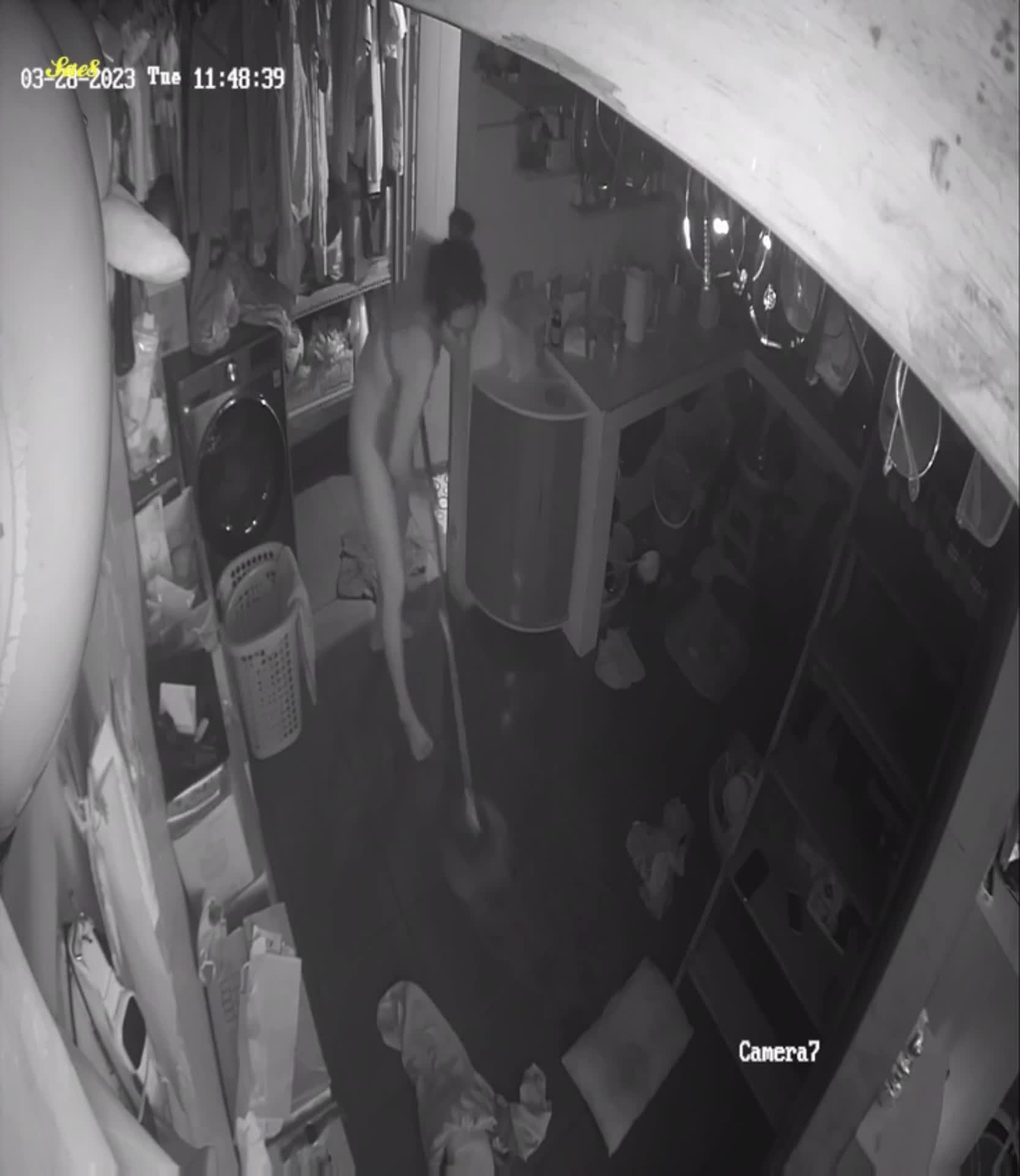 摄像头夜视拍摄少妇拖地中被路过的老公后入啪啪。