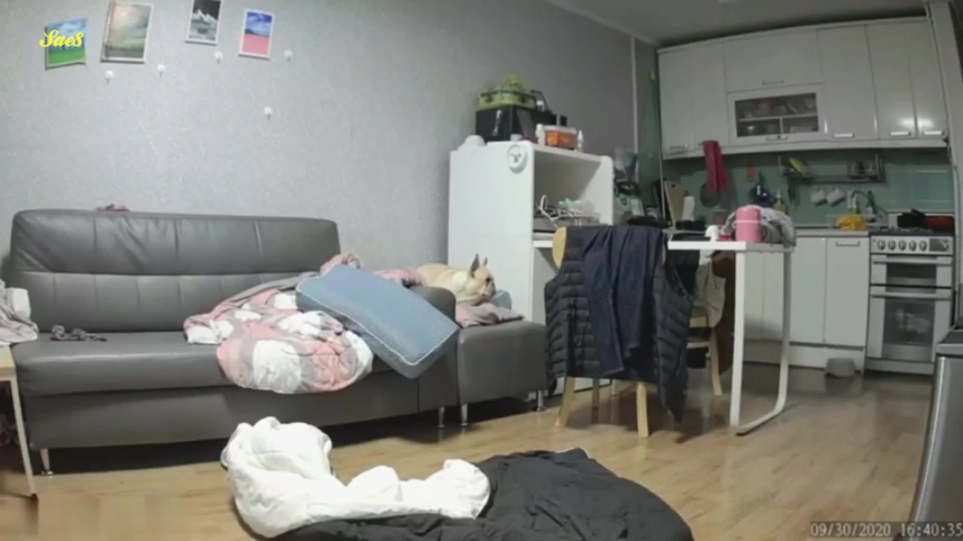 黑客入侵家庭摄像头监控偷拍骚妇在家偷汉家里小狗看呆了。